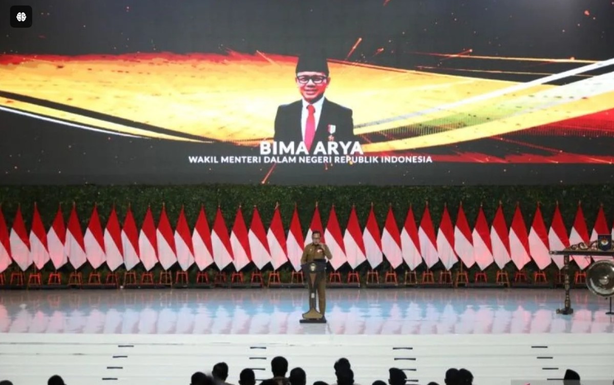 Wakil Menteri Dalam Negeri Bima Arya Sugiarto dalam Rapat Koordinasi Nasional (Rakornas) Pemerintah Pusat dan Pemerintah Daerah Tahun 2024 di Sentul International Convention Center (SICC), Kabupaten Bogor, Jawa Barat, Kamis (7/11/2024). (Dok Puspen Kementerian Dalam Negeri)
