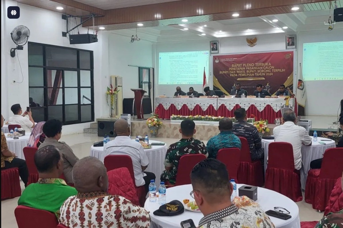 “KPU Kabupaten Sorong telah melakukan rapat pleno untuk menetapkan pasangan calon terpilih sebagaimana tertuang di dalam berita acara nomor 01/PL.02.7-PA/9601/2025 Tanggal 9 Januari 2025,” jelas Ketua KPU saat membacakan SK penetapan pasangan calon terpilih pada Pilkada 2024 di Kabupaten Sorong di Sorong, Kamis (9/1/2025), seperti dilansir dari Antara.