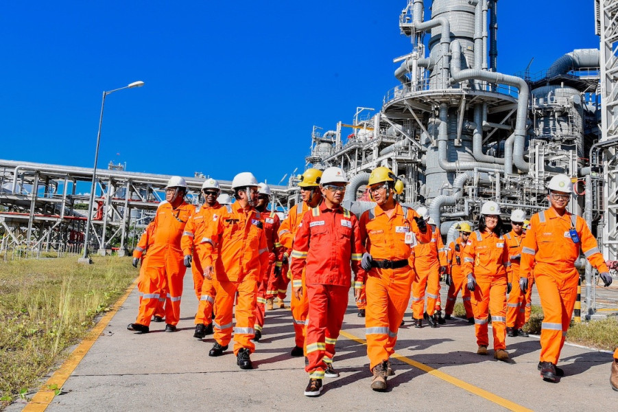 Menteri Energi dan Sumber Daya Mineral (ESDM) Bahlil Lahadalia saat meninjau fasilitas LNG Tangguh, Kabupaten Teluk Bintuni, Provinsi Papua Barat, Rabu (11/6/2025). (Dok. Humas Kementerian ESDM)