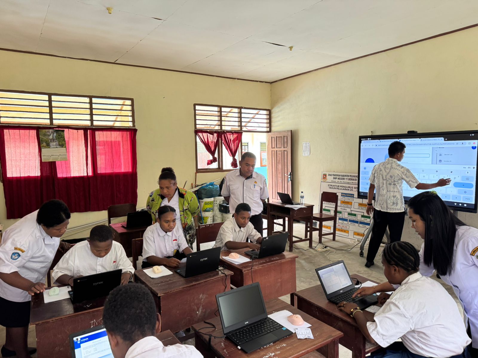 Pemantauan pelaksanaan TKA salah satunya dilakukan di SMPN 11 Demaisi, Distrik Menyambouw. Di sekolah tersebut, para siswa terlihat serius mengerjakan soal menggunakan perangkat laptop yang disediakan oleh sekolah. Proses ujian juga diawasi dan didampingi langsung oleh guru di masing-masing sekolah, yang bertugas sebagai pengawas sekaligus panitia pelaksana.