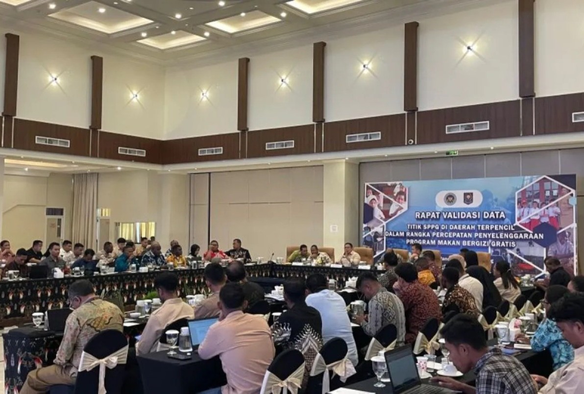 BGN melaksanakan rapat validasi data terkait titik SPPG di daerah terlencil yang berlangsung di Kota Sorong, Jumat (3/10/2025). (ANTARA/Yuvensius Lasa Banafanu)